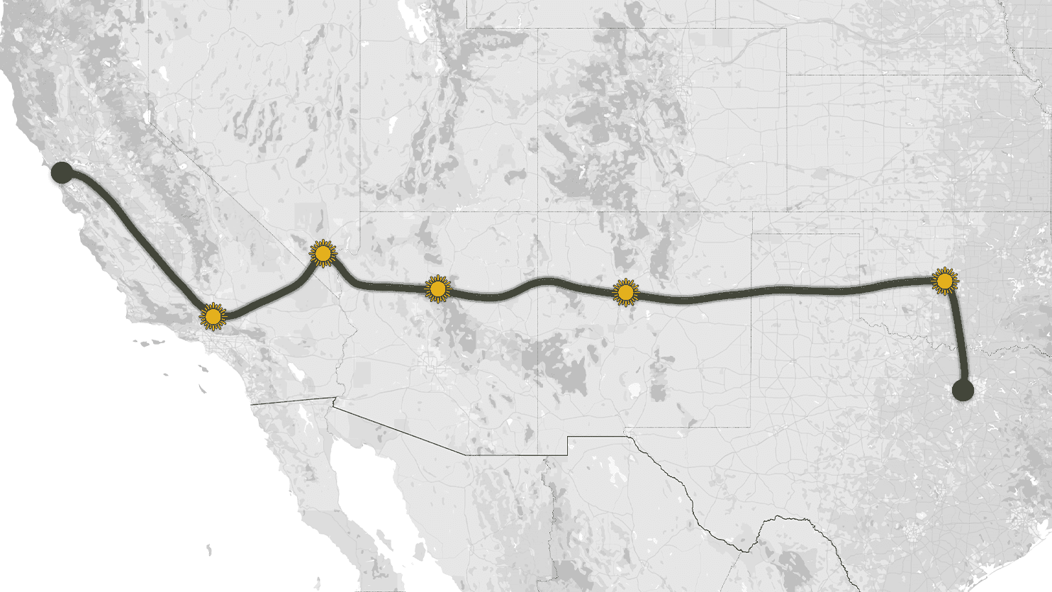 Pebble agreed. After joining the team last month, I was given the chance to bring that idea to life. On Friday, November 7th, I hitched one of our newest production units to a dual motor R1S with the Large Plus pack and left our Fremont HQ. This would be our longest continuous road trip, and while I was one of the two people hitting the road, the real credit belonged to the engineers and designers who shaped the hardware, software, aerodynamics, and towing systems. They built a platform I trusted from the first mile to the last. I also kept one element of the original plan intact. There would be no detailed charging plan. With work stacked up before departure, I never had the time to make one anyway. Our only fixed commitments were our Sunset Social stops. Everything else would be improvised.