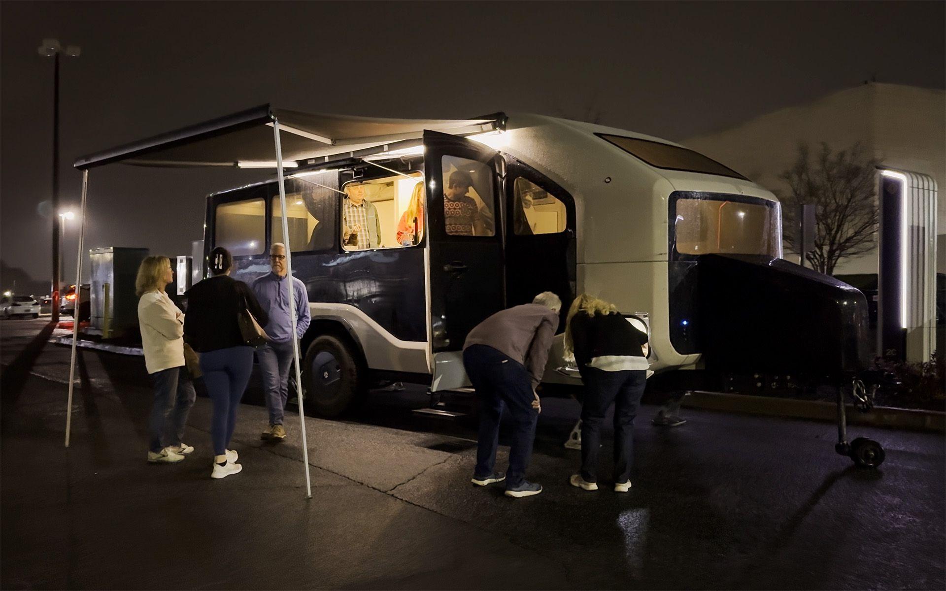 I’ve camped in Pebble Flow several times before, but this trip would be different. This would be my longest stretch living out of Flow, the kind of trip where design meets daily reality. Like Ryan and Nuh’s road trip to another trade show late last year, it wasn’t only a transport plan, It was a chance to live with the product, learn from the product, and meet community members along the way. Like the prior trip, we planned a series of “Sunset Social” meetups at DC fast charging stations along the way where reservation holders, followers, and curious passersby could walk through Flow, ask questions, and see how it handles real-world use.