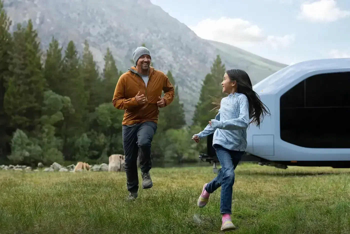 Pebble is making RVing a more sustainable lifestyle. The Pebble Flow is 100% electric, powered by a generous EV battery and an integrated solar system, and will hold enough power to allow users to stay off-grid for up to 7 days before the need to recharge. Every technical feature embedded in the Pebble Flow is designed to make RVing less cumbersome and will bring ease to things like hitching, towing, and setting up camp. Users can expect an iPhone-like experience to navigate these features — no owner’s manual is required.